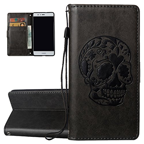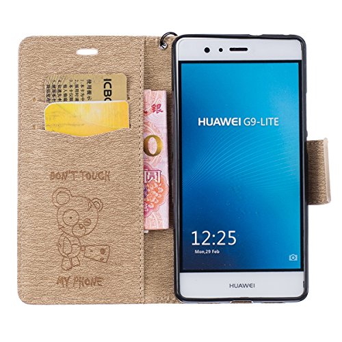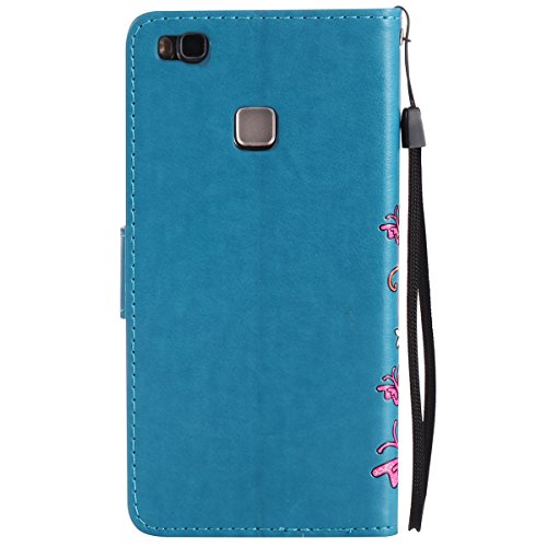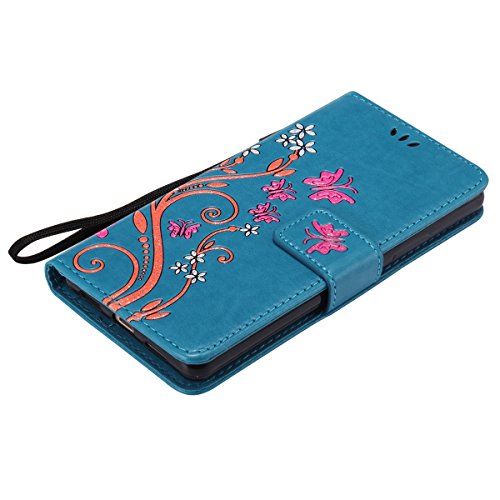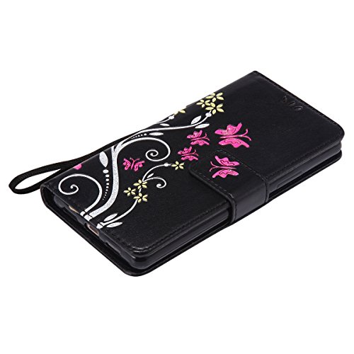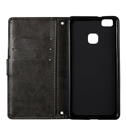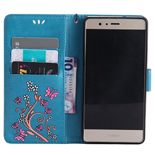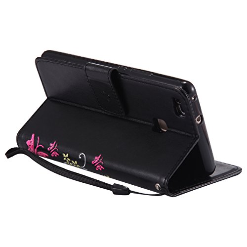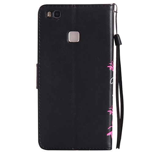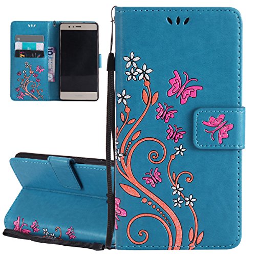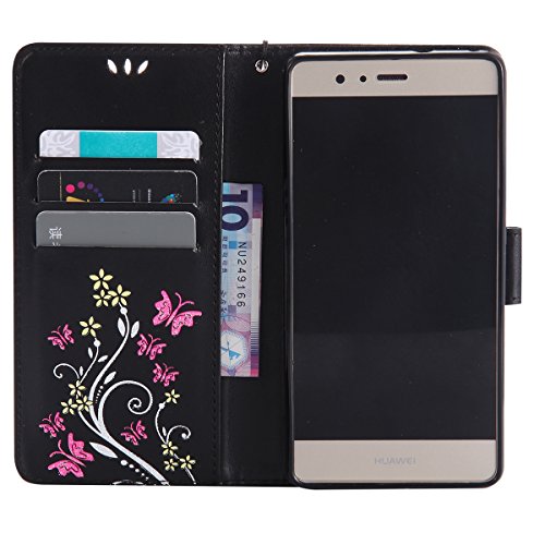 Hulle fur Huawei P9 Lite, Tasche fur Huawei P9 Lite, Case Cover fur Huawei P9 Lite, ISAKEN Blume Schmetterling Muster Folio PU Leder Flip Cover Brieftasche Geldborse Wallet Case Le