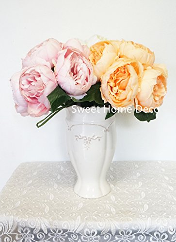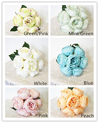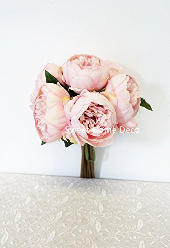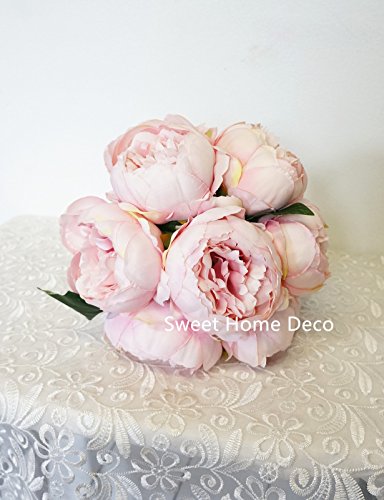 Sweet Home Deco 11'' Silk Peony Artificial Flower Bouquet Wedding/Home Decorations (10 Stems/7 Flower Heads) (Pink)