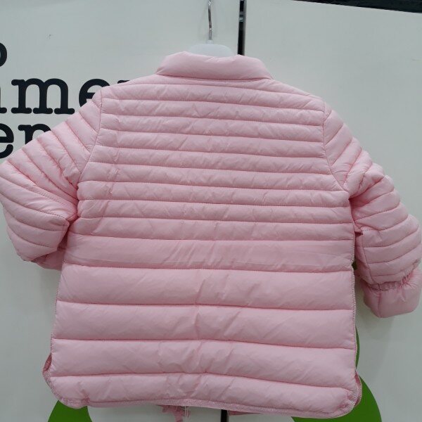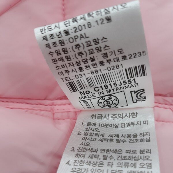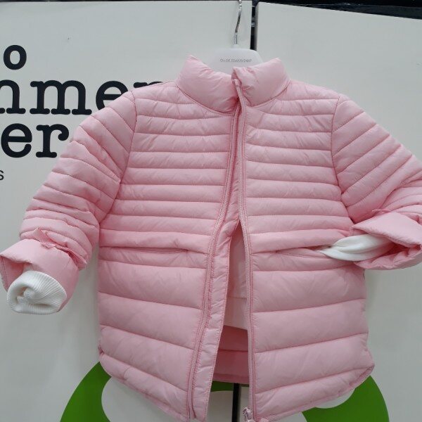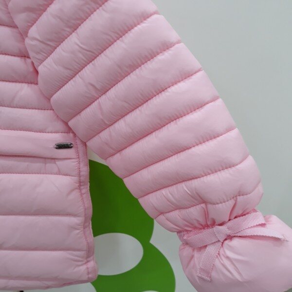 핑크색의 누빔점퍼로서 소매 포인트를 주어 귀엽게연출할수 있는 가절기 패딩입니다