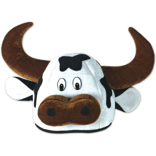 ReleaseDate : 2013-07-28 Studio : The Beistle Company Publisher : The Beistle Company Binding : Toy Product Description Beistle 60791 Plush Cow Head-Hat. Amuse your friends with this plush black and white cow hat. Our cow hat has a brown nose with a set of brown horns. Hat has a cloth lined crown and one size fits most. 0