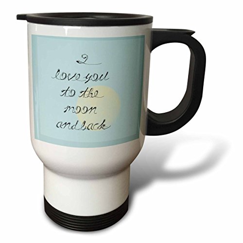 3dRose I Love You To The Moon and Back Travel Mug, 14 oz, Stainless Steel, White