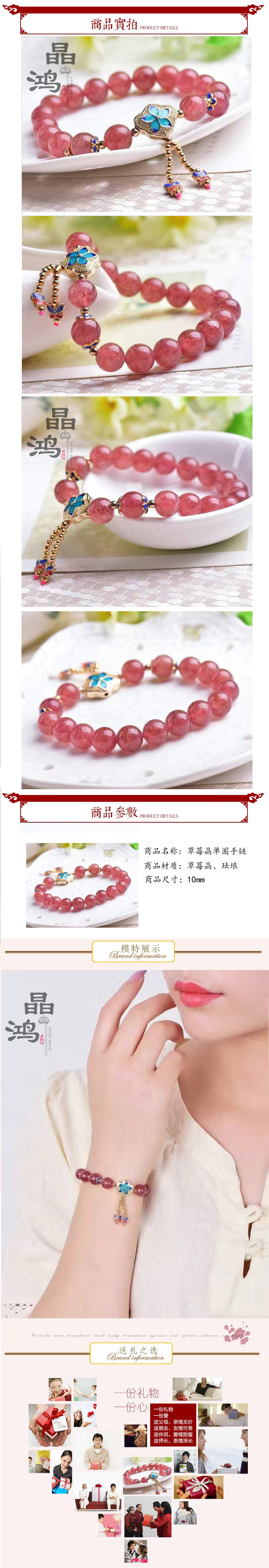 晶鸿蔷薇晶草莓晶天然粉晶粉水晶手链佛珠招桃花晶旺夫韩版女
