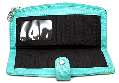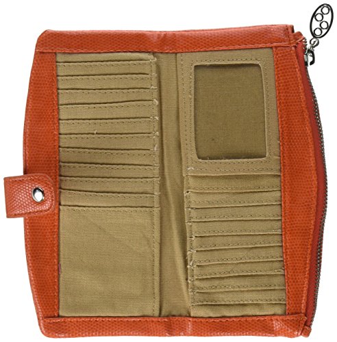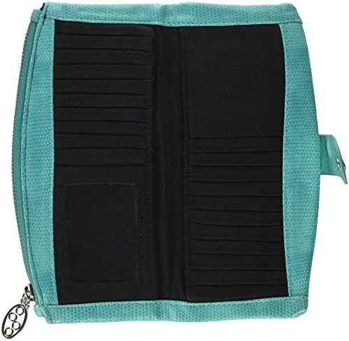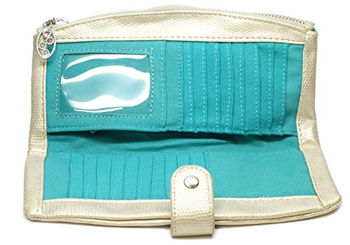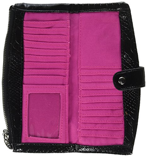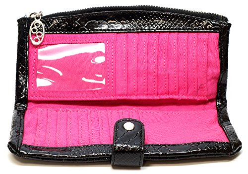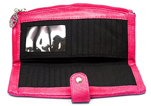 Product Description The stylish way to carry your essentials! This sleek and slim wallet offers 20 card slots, two interior pockets and window ID holder. The oversized zippered pouch can fit cell phone, money, keys and more. Double snap to allow for expansion. The only wallet you'll ever need! 0