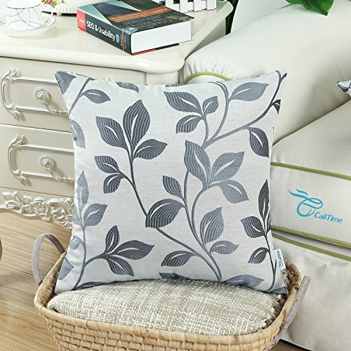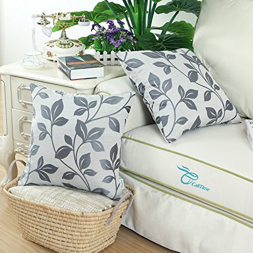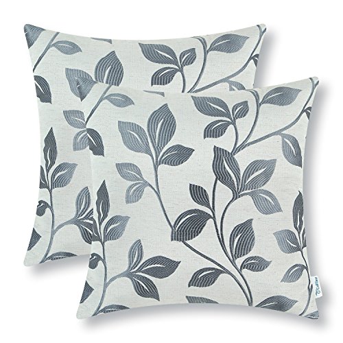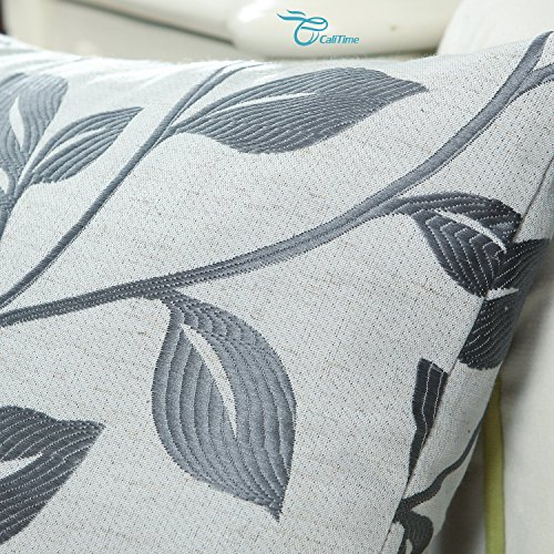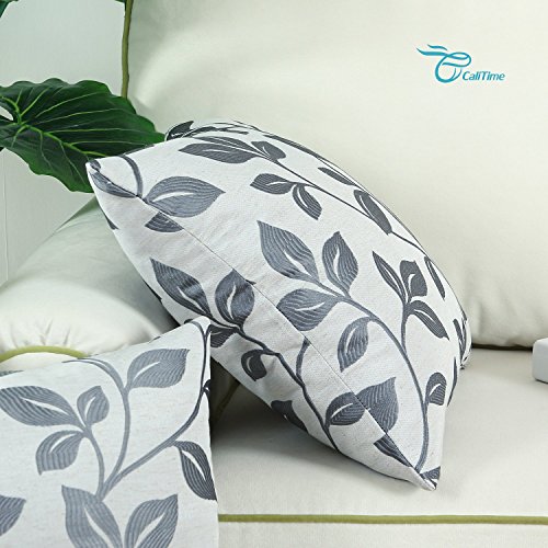 Pack of 2 CaliTime Cushion Covers Throw Pillow Cases Shells 18 X 18 Inches Both Sides, Big Leaves, Grey