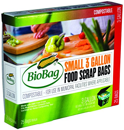 Biobag, Food Waste Bags, 3 Gallon, 25 Count (Pack of 4)