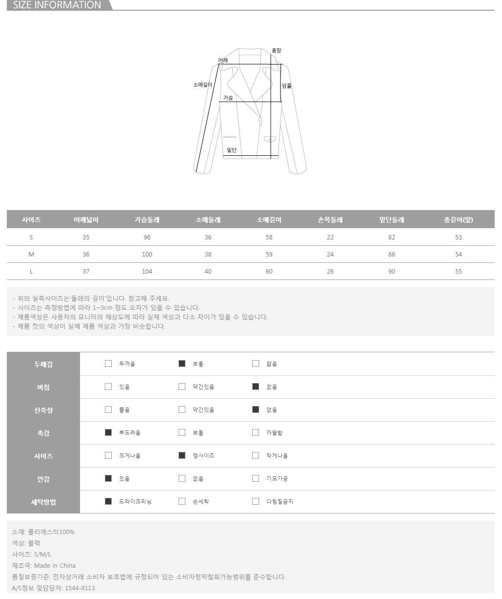 모델의 착용 컬러는 블랙/S 입니다.