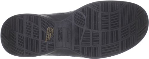 -. Feature : Water and stain resistant leather uppers / Slip resistant rubber outsole / Dual desitant shock absorbent foam footbed / Friction free mesh linings