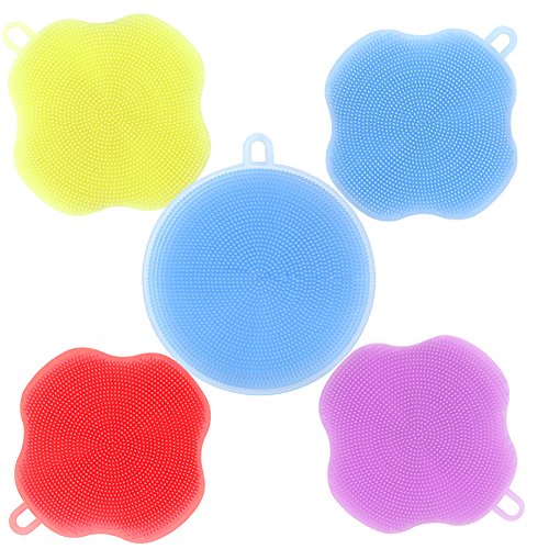 PACKS OF 5 SILICONE SPONGE - 4 leaf shape in blue,yellow,red and purple,1 round shape in Blue
