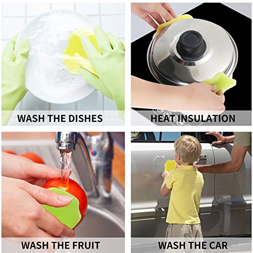 MULTIPLE FUNCTION-You can use this silicone brush for dishwashing, scrubbing pot or pan, washing fruits and vegetables. and even you can use it for shower , it will be a perfect heat insulation cushion or glove when in need