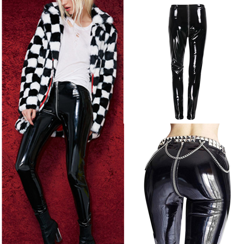 Fashion PU Pencil Pants Women Reflective PU Leather Skinny Pants Trouser Autumn High Waist Zipper Casual Slim Mujer Long Pants