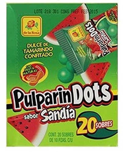 -. Feature : Pulparindots Sandia / Coated tamarind candy filled with Sandia Flavor and salted tamarind pulp / Tamarind pulp Made with REAL fruit 20 bags, 10 pieces