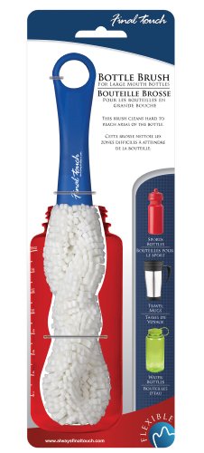 -. Binding : Kitchen -. Brand : Final Touch -. Color : White -. EAN : 0886245003651 -. Feature : These brushes clean hard to reach areas, making limited access bottles easy to clean / Designed for use with plastic, metal, glass, water bottles and travel mugs / 20 Times more durable than a sponge / Brush material stays firm and will not get too soft / Dishwasher safe on the top rack -. Label : Product Specialties -. Manufacturer : Product Specialties -. Model : BR10 -. MPN : BR10 -. PackageQuantity : 1 -. PartNumber : BR10 -. ProductGroup : Kitchen -. ProductTypeName : KITCHEN -. Publisher : Product Specialties -. Studio : Product Specialties -. Title : Final Touch BR10 Large Mouth Bottle Brush -. UPC : 886245003651