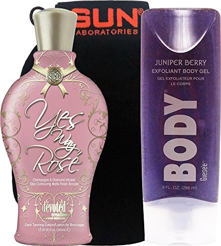 1. Yes Way Rose, Champagne and Diamond Infused Matte Finish Tanning Lotion Bronzer 12.25 Oz1. Juniper Berry Exfoliating Body Scrub 9 oz1. Body Exfoliation Glove Tan Remover