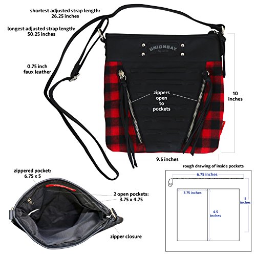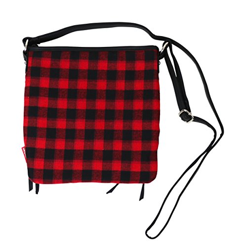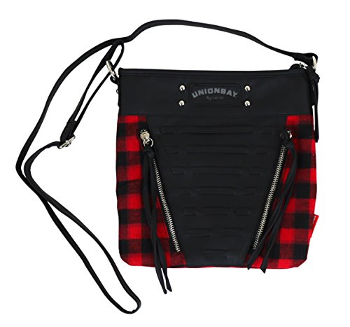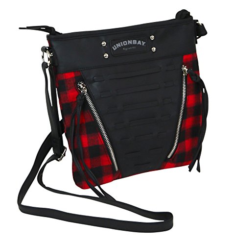 Unionbay Crossbody Handbag With Adjustable Faux Leather Strap - Red and Black Flannel