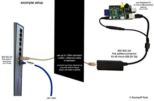 splits IEEE802.3af into RJ-45 (network) and micro USB (power 5V/2A)