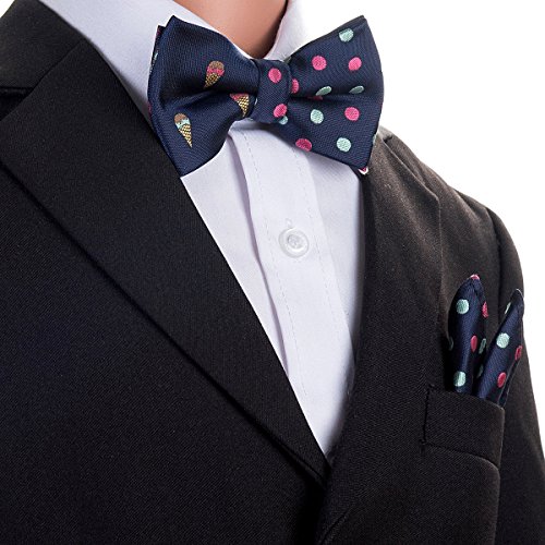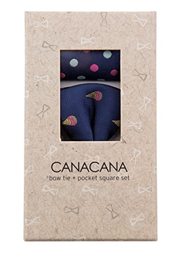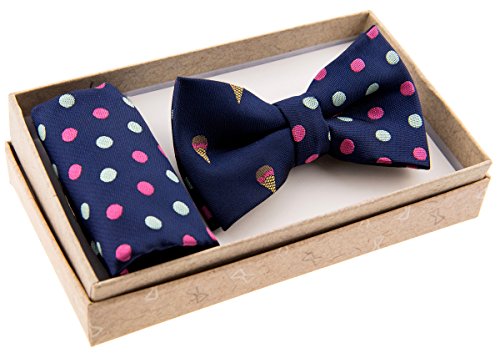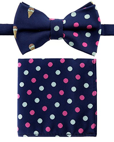 Canacana Sweet Ice Cream Pre-tied Boy's Bow Tie with Stripes Pocket Square Set