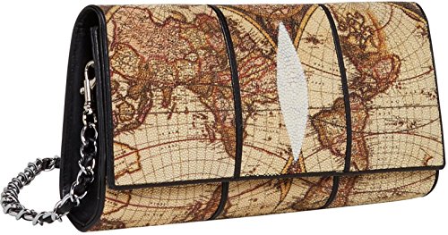 Cross Body Shoulder Bag The Sash Removable Lady Stingray Genuine Leather - Map