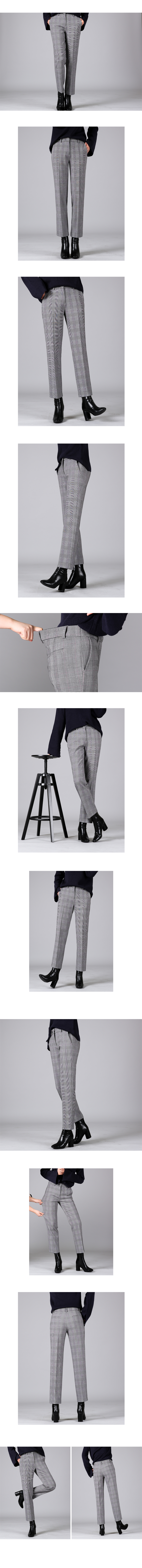 잔잔한 체크패턴이 클래식한 무드와 고급스런 무드를 담고 있으며 투박하지 않은 기모안감으로 몸의 온도를 따뜻하게 유지 시켜 줄 슬랙스~ 잔잔한 체크패턴으로 유행에 민감하지 않으며 한 장만으로도 포인트 뒷부분에는 티나지 않는 히든 속밴딩으로 장시간 착용에도 편안하고 안정감 있는 핏은 물론 2중 잠금버튼으로 허리라인을 좀더 단단하게 고정 구김이 적은 소재 사용으로 부담없이 데일리하게 착용 가능하며 소프트한 기모안감은 터치감이 우수하며 체온을 따뜻하게 유지 양사이드 포켓으로 간단한 수납이 가능하며 백라인의 페이크 포켓으로 힙업 효과 일자로 툭 떨어지는 핏감이 체형 커버는 물론 더욱 더 길어보이고 슬림한 다리라인 완성