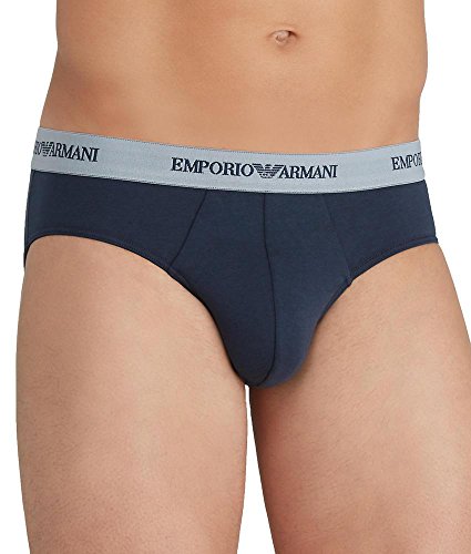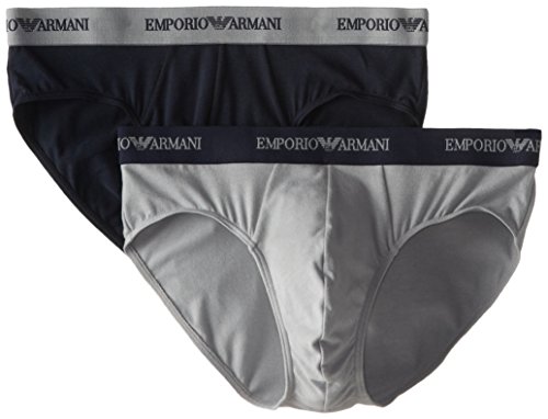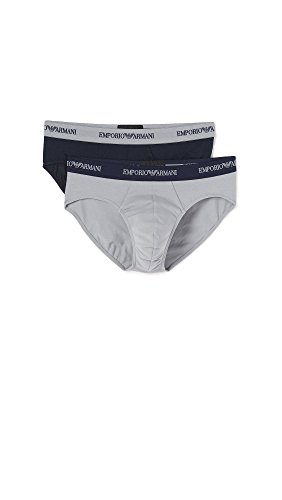 Emporio Armani Men's 2 Pack Cotton Brief, Grey/Marine, Medium