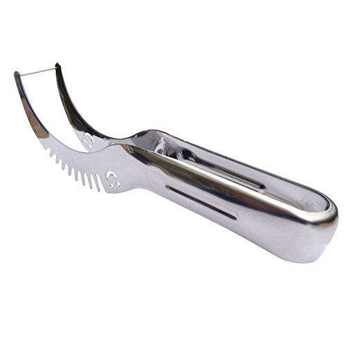 ERGONOMIC DESIGN / DOES NOT SLIP OUT OF YOUR HANDS: Designing the knife's form, developers took into account the anatomical features of a hand; therefore, the watermelon knife is easy and safe to use.?A big grip facilitates the process of cutting. We have taken care to ensure that you will get a perfect result with less effort. It does not slip out of your hands and will not cause injuries.