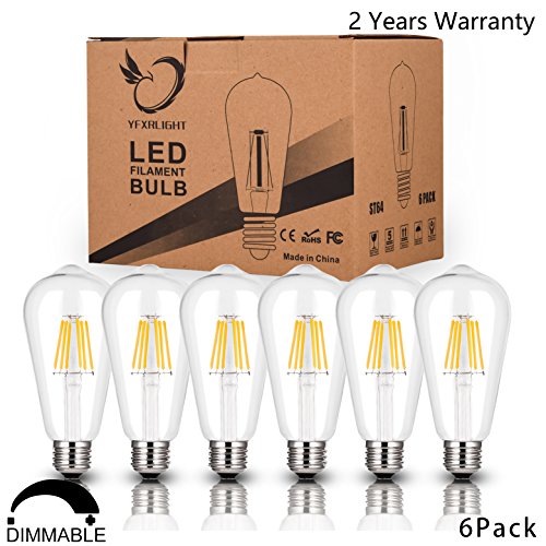 - ☄ ADD A COOL AND ROMANTIC FEEL. YFXRLIGHT Antique LED Bulbs have 550 Lumen output at 2700K color temperature and thanks to its 360° beam angle, the light is going to shine from every angle by creating a gorgeous Omni-directional illuminating effect. Also, our LED bulbs are dimmable to adjust to the mood, but make sure to upgrade your lighting system with recommended dimmers listed below to avoid flickering.