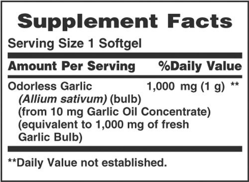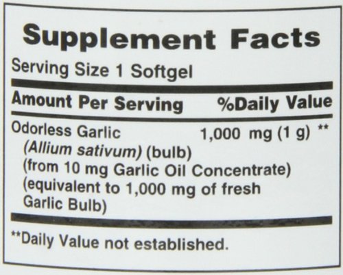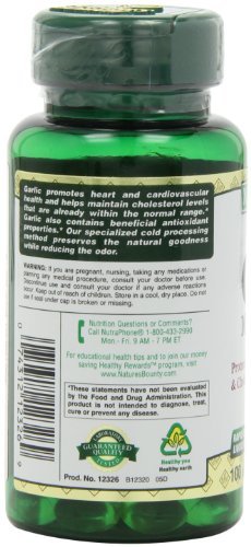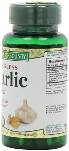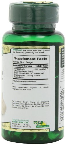 - Feature : Nature's Bounty Odorless Garlic 1000mg, 100 Softgels (Pack of 9)
