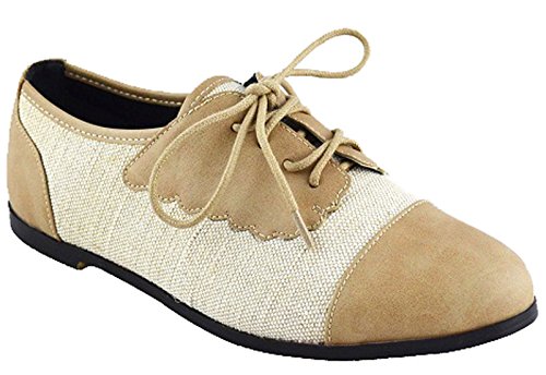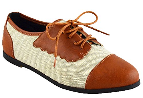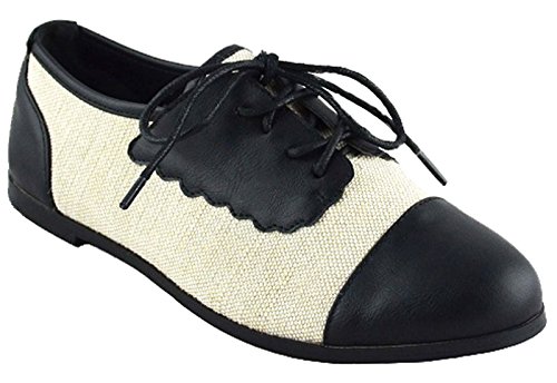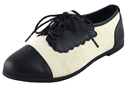 Product DescriptionChase Chloe Women's "Dana-3" oxford shoe features two tone fabric design. Unique style can be worn day to night. Comfy flat heel with closed toe and adjustable tie closure. Imported.0