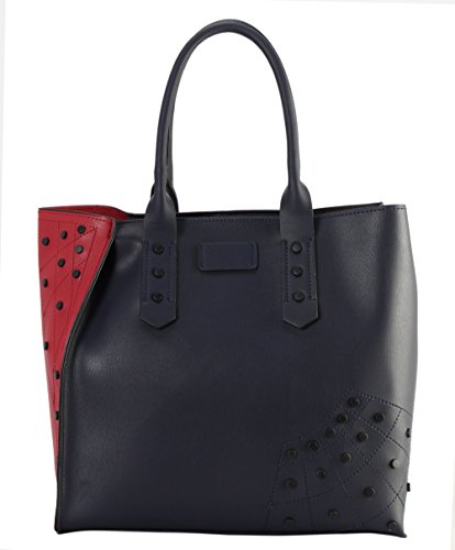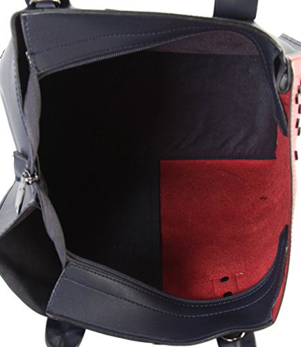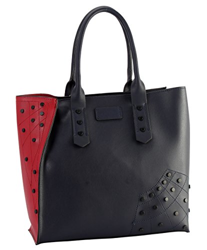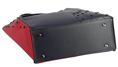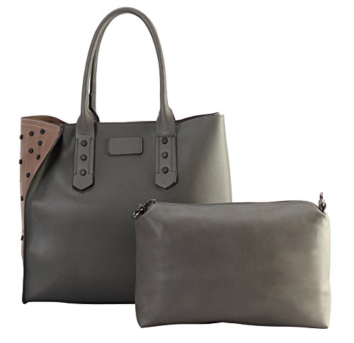 -. Feature : This handbag comes in 5 different colors: Black, Blue, Grey, Khaki, and Olive. / High Quality PU Leather Black Studded Décor 2 Tone Tote Handbag 2 Pieces Set. / High Quality Fabric Lined Interior with Multiple Interior Pockets. 1 Main Compartment with 1 Cosmetic Bag Inside. / Approximate Size info: Length 12.3" x Width 5" x Height 11.5" Material: PU Faux Leather. Top Zipper Closure. / Color showing in other color is to show the different variation angles of the handbag. The actual bag ship, will be the one your purchased.