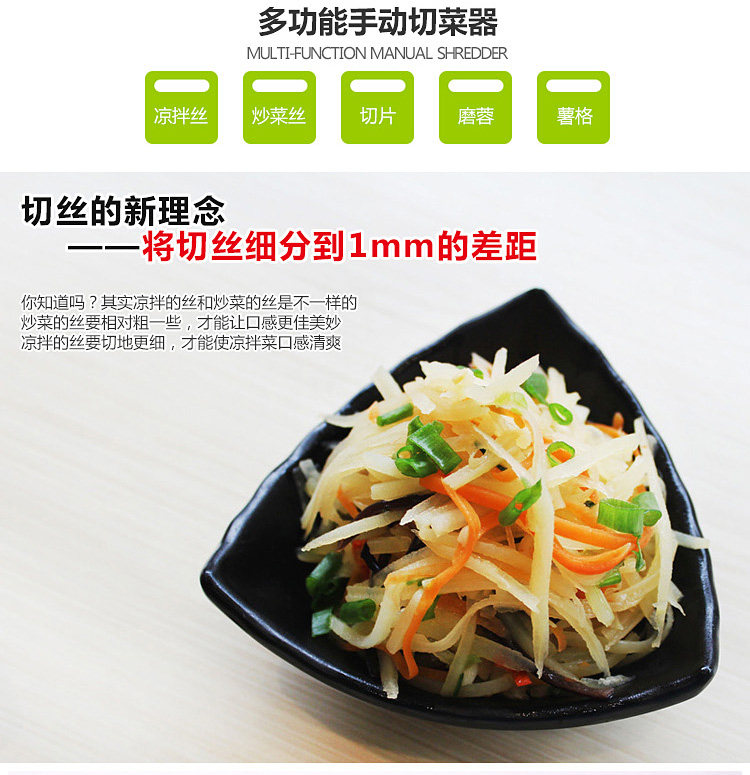? ? ? ? ?切花纹、切粗丝、切细丝、磨泥,都能轻松搞定!是您
