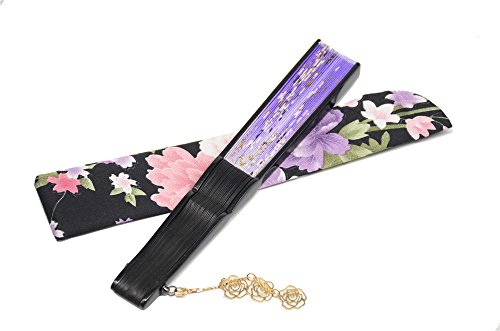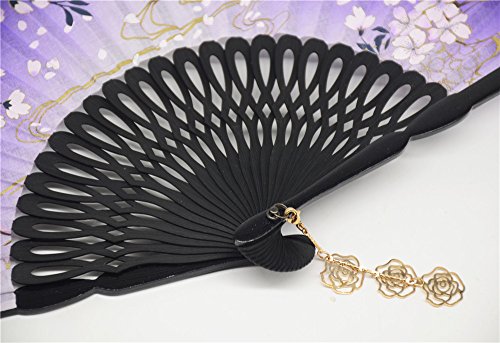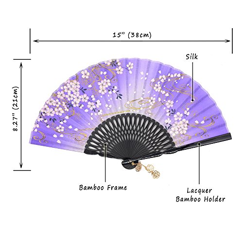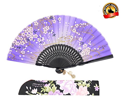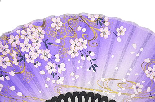 LYSA "Sakura Cloud" Folding Hand Held Fan for Women,and Silk Tissue Protective Sleeve --- Chinese/Japanese Style (Purple-009)