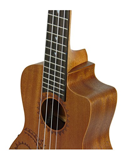 - Feature : Traditional concert uke takes its design from traditional hawaiian body ornamentation. / Concert body. Mahogany top back and sides. Rosewood fretboard. Satin Finish. / Onboard preamp. Gig bag included.