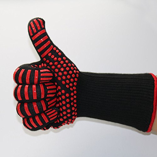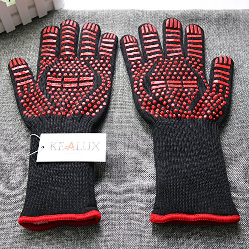 Kealux 932°F Extreme Heat Resistant Oven Gloves, BBQ Grilling Cooking Gloves, Fire Gloves For Fireplace and Fire Pit, Smoker & Kitchen Accessories-1 Pair(Black/Red dot)