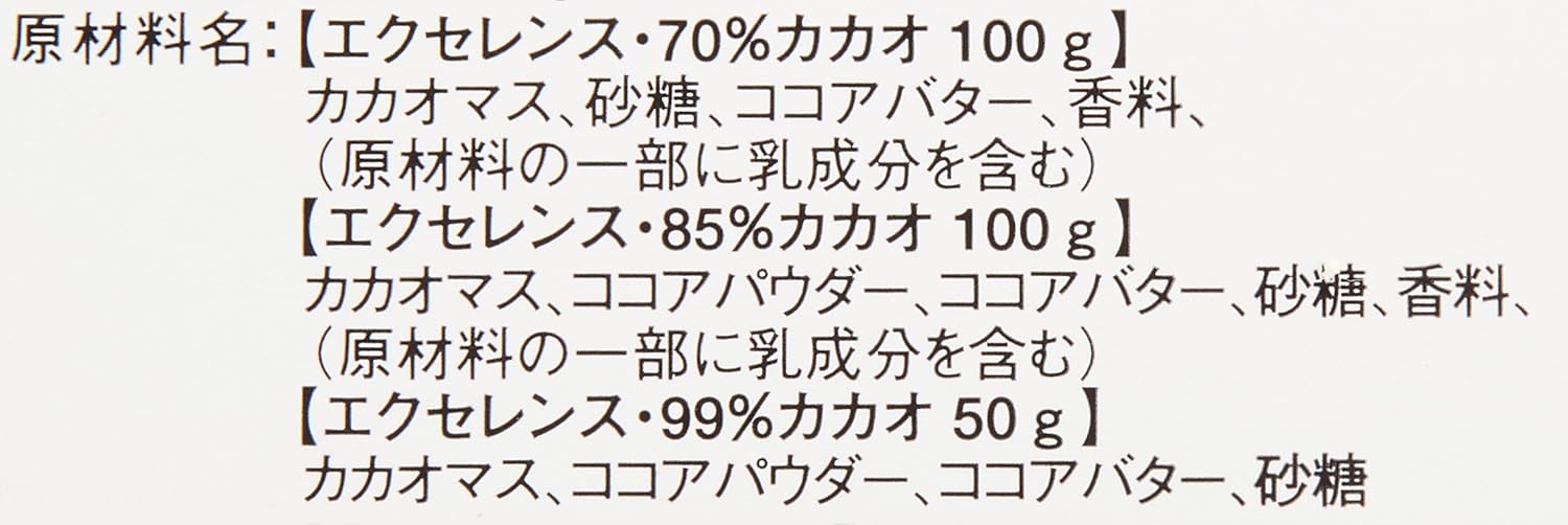 原材料:カカオマス(西アフリカ・中南米産)、砂糖(スイス産)、ココアパウダー(西アフリカ・中南米)