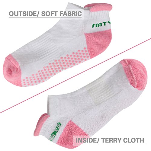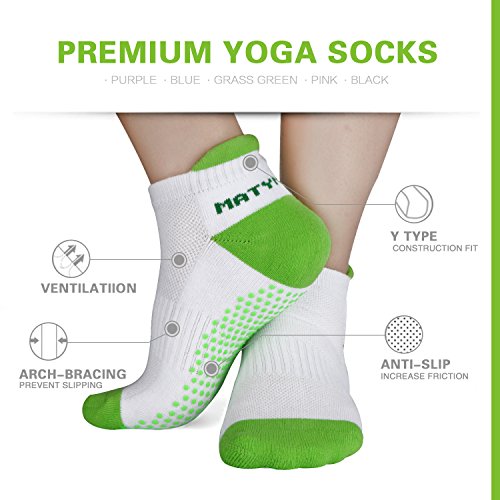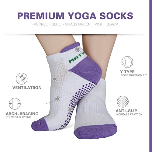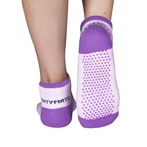 -. Feature : SUPER GRIPPY. Silicone grip dots and arch compression provide excellent support on your feet, control balance and ensure stable movements, allowing for safely practice / COMFORTABLE. Heel tab design let you concentrate on your movements and prevent socks from sliding inside your shoes. Furthermore, it is great to protect your Achilles from blistering / BREATHABLE. Differ from regular socks, Matymats grippy socks can absorb your sweat, keep your feet cool and ensure high level of comfortable fitness reducing bacterial and bad odor / Ergonomic design with contouring the natural shape of your foot allows Matymats socks perfect for Yoga, Pilates, Dance, Studio, Barre or other training, or wherever you want, such as slippery wood floors/stairs; Also a good choice for casual wear with your shoes / Easy to care for - Machine or Hand Wash Cold with Similar Colors. Do not bleach. Tumble dry low. Do not iron. Do not dry clean