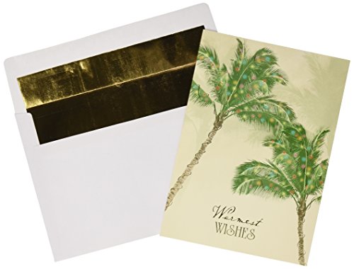 -. Feature : Box with 18 holiday cards featuring gold foil stamped Warmest Wishes / Verse P.R.Inted in Red: May All The Joys Of This Holiday Season Be Yours Throughout The New Year / 18 Gold Foil Lined White Envelopes / Folded, cards are each 5.625 x 7.875-inches / Warmest Wishes cards feature elegant, traditional holiday themes with a warm weather twist