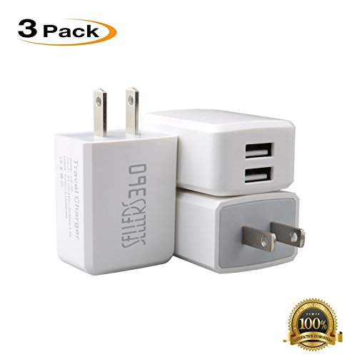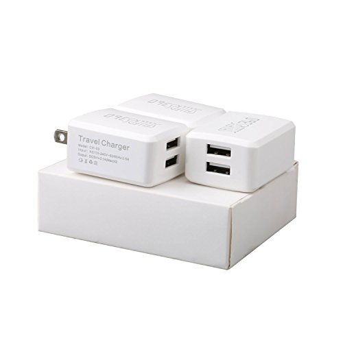 Wall Charger, [3 PACK]Dual Port USB Plug,Portable Travel Adapter Block,for iPhone SE / 6s / 6 / 6 Plus, iPad Air 2 Pro/mini 3,Galaxy S7 Edge S6 Edge / Edge+, Note 5, LG G5.[White]