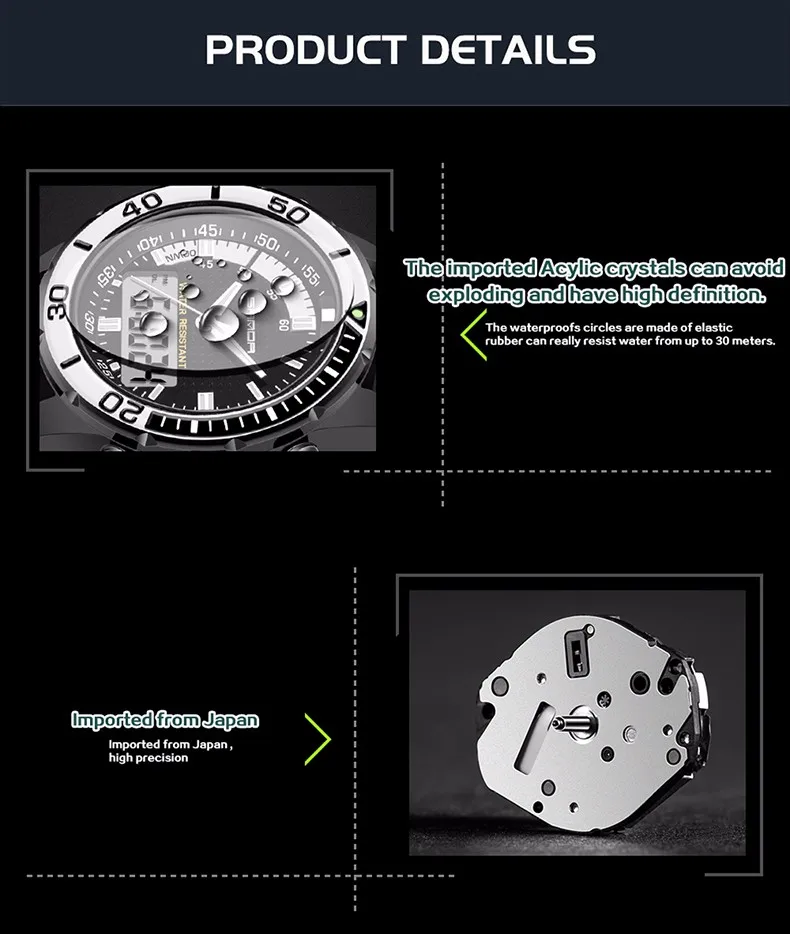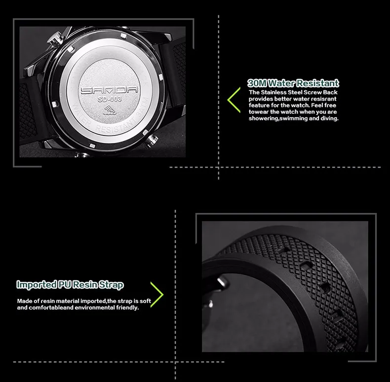 Feature:Stop Watch,Back Light,Shock Resistant,Auto Date,Chronograph,Complete Calendar,Diver,Multiple Time Zone,Water Resistant,Alarm,Swim