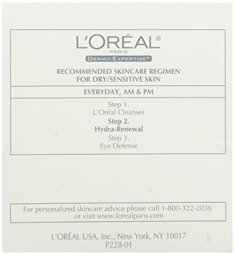 -. Binding : Health and Beauty -. Brand : L'Oreal Paris -. EAN : 0071249938010 -. Feature : Continuous moisture all day for softer, healthy looking, and radiant skin / Formulated with Pro-vitamin B5 to help protect against moisture loss / Perfect for dry, sensitive skin / Dermatologist tested, non-comedogenic / Net Wt. 1.7 oz. -. Label : L'Oreal Paris -. Manufacturer : L'Oreal Paris -. NumberOfItems : 1 -. PackageQuantity : 1 -. ProductGroup : Pantry -. ProductTypeName : HEALTH_PERSONAL_CARE -. Publisher : L'Oreal Paris -. Studio : L'Oreal Paris -. Title : L'Oreal Paris Hydra-Renewal Continuous Moisture Cream, 1.7 Ounce -. UPC : 071249938010