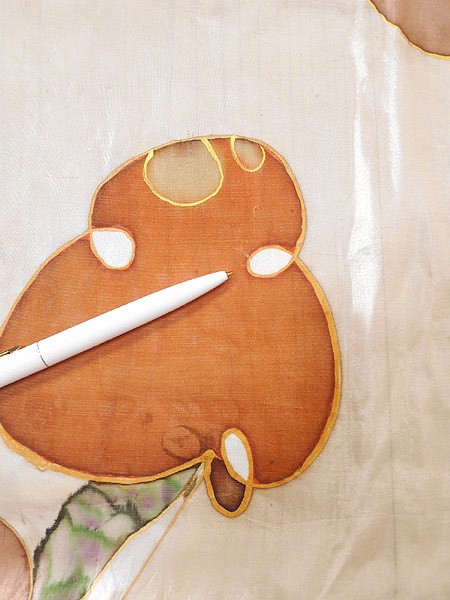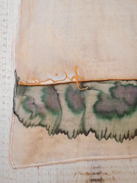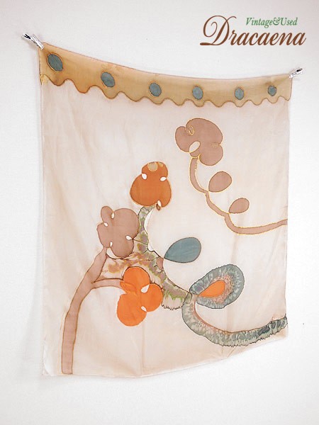 古着雑貨 【ブランド】- 【スタッフコメント】シルク製のハンドメイドスカーフです。 シアー感ある素材でにじみの染めパターン。 植物柄です。 使用感あります。 【カラー】茶 【柄】植物 【メール便】可 【ジャンル】古着雑貨類 【コンディション】★★ 【モデル】- 【ダメージ】左上色ムラ・中央糸吊り・中央にシミなど使用感あり。画像参照してください。 【素材】シルク 【表記サイズ】- 【実寸サイズ】 縦 91 cm 横 84 cm