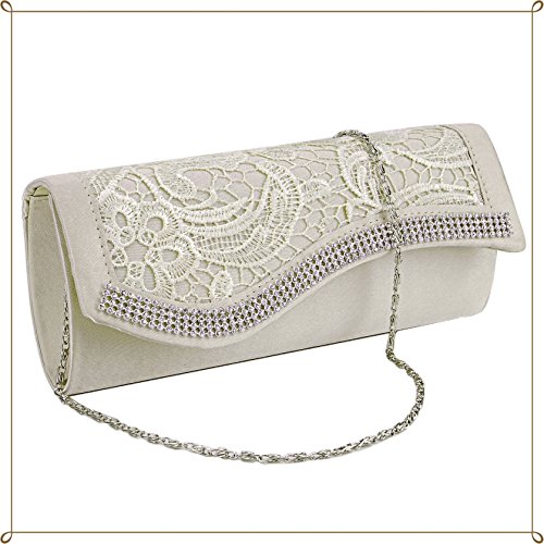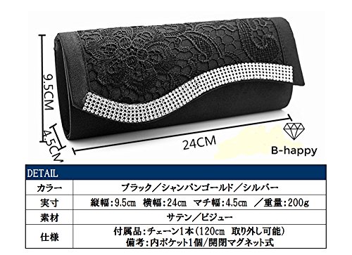 -. Feature : 大人女子の為のパーティーバッグ☆なめらかなサテン生地に、贅沢なレースとビジューが、アクセントに。高級感のあるエレガントな大人の女性を演出します。 / シーンによってドレスは変わる・・・でもバッグもその度に変えるのはちょっと大変・・・そんな貴方にピッタリ☆シーンを選ばず、どんなドレスにも合わせやすい、主張しすぎない優秀デザイン♪ / ご祝儀袋、ミニ財布、スマホ、コスメなどの必需品をしっかり収納する便利な大きめサイズです。嬉しい内ポケット付きなので、収納機能も抜群♪ヘアピンや絆創膏など、ちょっとした小物も収納美人 / シルバーチェーン付きなので、ハンドバック・クラッチバックとシーンや用途に合わせて印象チェンジも☆また、マグネットボタンなので、携帯やハンカチもすぐに取り出せます。 / カラーはブラック・シルバー・シャンパンゴールド・ホワイトの四色展開。★送料無料!Amazonより即日発送!☆