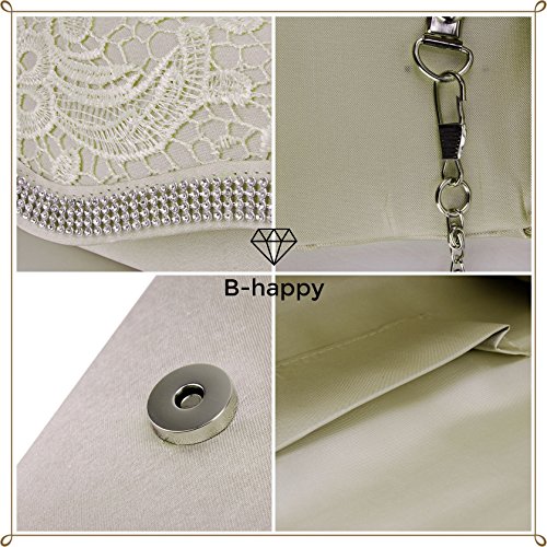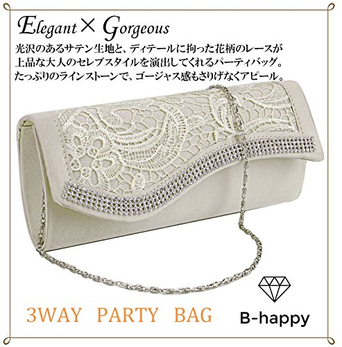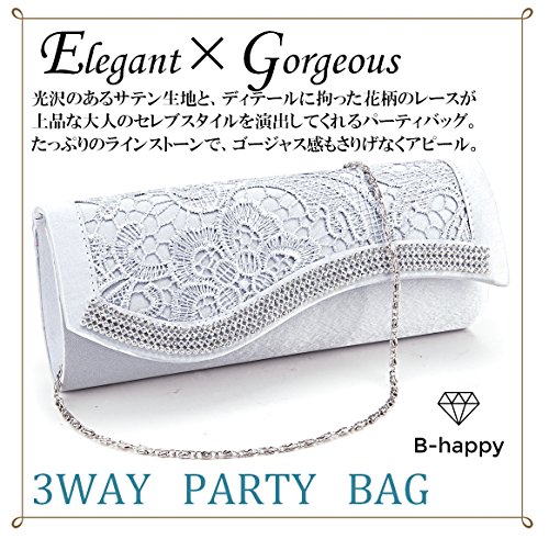 -. Title : B-happy(ビーハッピィ) 大人 女子 エレガント 2 Way 花柄 レース サテン 切り替え パーティ バッグ 大容量 結婚式 二次会