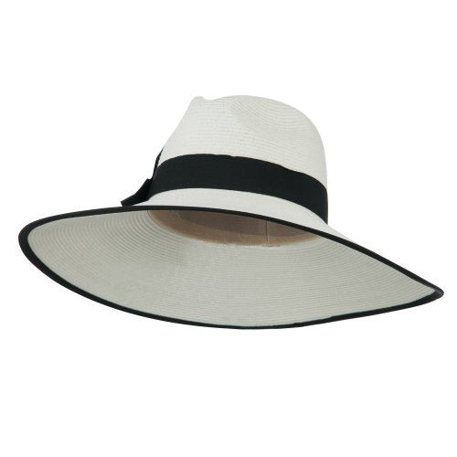 -. Binding : Apparel -. Brand : Jeanne Simmons -. Department : womens -. Feature : Made of 75% paper straw and 25% nylon. / ONE SIZE fits most for women, fitting up to 7 1/4. / Inner sweatband. / Adult/Female. / Crown measures 4 inches deep. -. ProductGroup : Apparel -. ProductTypeName : HAT -. Title : UPF 50+ Fedora Crown Paper Braid Hat - White Black