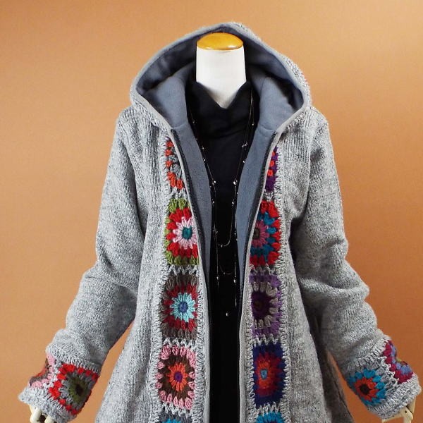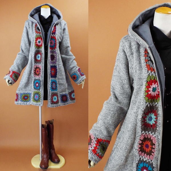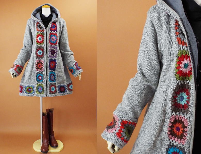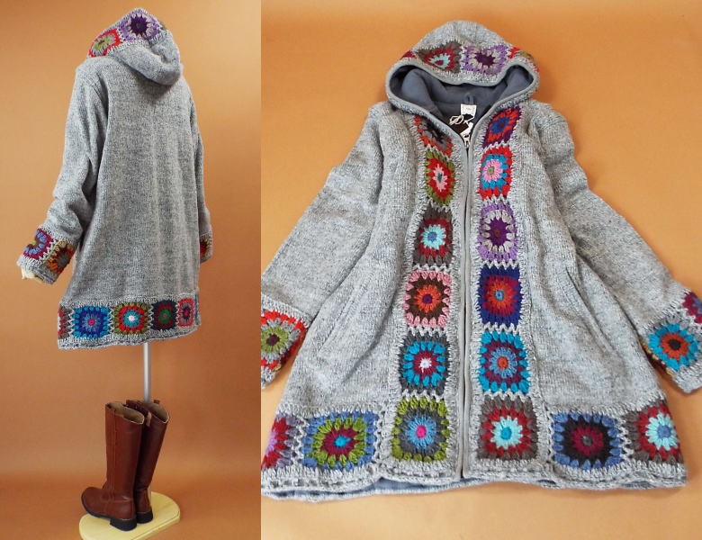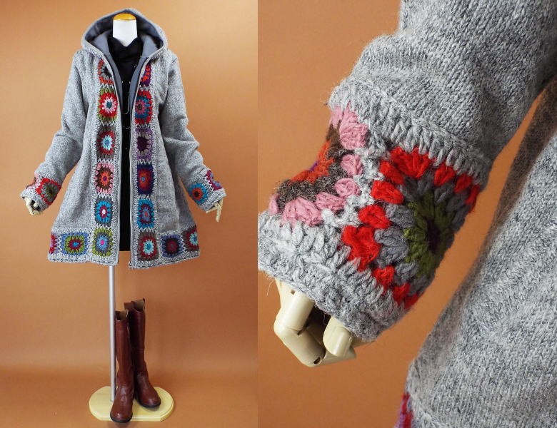 ----------------------------------------------------------------- お花のモチーフがデザインされた 可愛いニット編みコート♪ 自然なAラインが綺麗スタイル♪ フロントからフードにかけて お花のモチーフがデザインされた 可愛いデザインコート♪ 暖かいパーカーデザイン♪ ハンドメイドデザインで おしゃれに着れちゃうニット編みコートです *お花モチーフ部分はハンドメイドの為 お色はランダムになります *フロントはファスナーデザインになります *かぎ編み部分のお色について* こちらは1枚1枚手作りしております関係で かぎ編みのお色は1枚1枚違うお色になります ご理解の上ご購入をお願い致します 再生産の為フロント部分のカギ編み部分 (黒いカラー部分がグレーのカラー)になります ---------------------------------------------------------------- ◆素材◆ 表地 ウール100% 裏地 フリース生地の裏地になります ◆サイズ表示◆ M~Lサイズ フリーサイズ バスト79~98cm ◆実寸◆ バスト112cm 肩幅43cm 袖丈61cm 着丈84cm ◆カラー◆ グレー *平置きの状態で採寸させて頂いております ----------------------------------------------------------------- ♯メジャーでの測定の為若干の誤差はご了承下さい。 画面上と実物では多少色具合が異なって見える場合もございます。 ご了承ください。 決済・返品について ※決済について※ お支払いはクレジットカード申請中・代金引換・銀行振込・コンビに決済・ペイジーの中からお選びください。 ※返品について※ 返品・交換は未使用の物に限らせて頂きます。 商品到着後3日以内にご連絡をお願い致します。 ◆返品、交換についての詳細は上部からご確認が可能です。 |