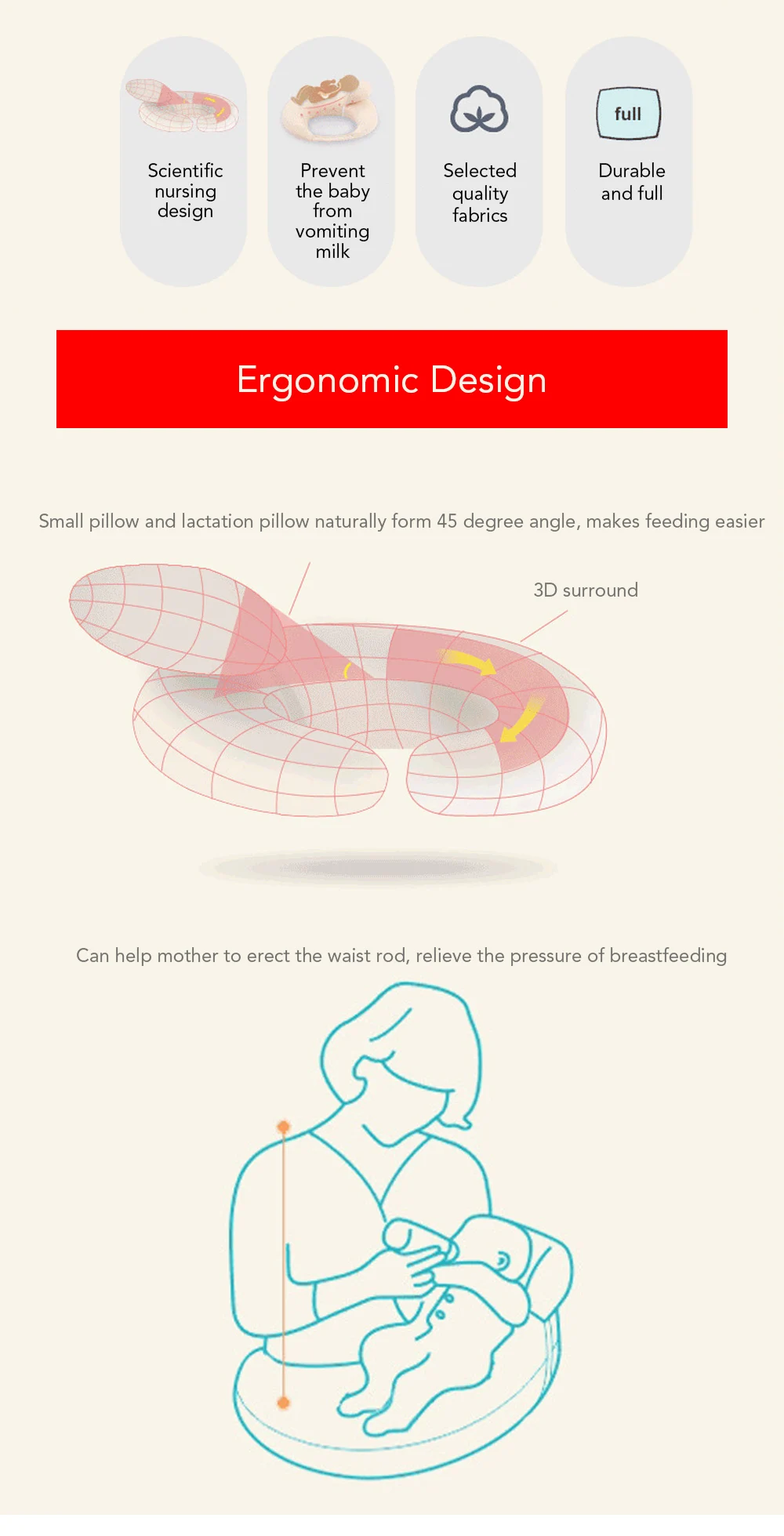 - Small pillow and lactation pillow naturally form 45 degree angle, makes feeding easier