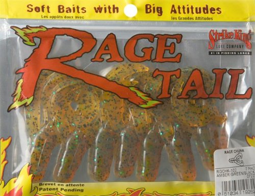 ReleaseDate : 2010-08-02 Studio : Strike King Lure Company Publisher : Strike King Lure Company Binding : Sports Product Description The Rage Chunk is designed as a trailer for swimming jigs, flipping jigs, casting jigs and football jigs. Each Rage Tail lure has a unique and exclusive tail design and is engineered like no other soft plastic bait. Each is designed with a specific purpose and uses customized hi-grade plastics for superior action. You won't believe the splash, noise or other action that each Rage Tail has! 0