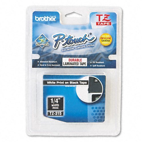 -. Title : Brother P-Touch Products - Brother P-Touch - TZe Standard Adhesive Laminated Labeling Tape, 1/4w, White on Black - Sold As 1 Each - Perfect for labeling file folders and binders, name badges, and small signage. - Laminated surface wipes clean. - Resists water, grease, grime, fading and abrasion. - Withstands temperatures from -30°C to 100°C, allowing use for outdoor applications. -