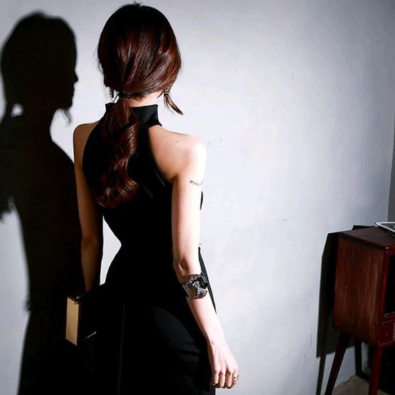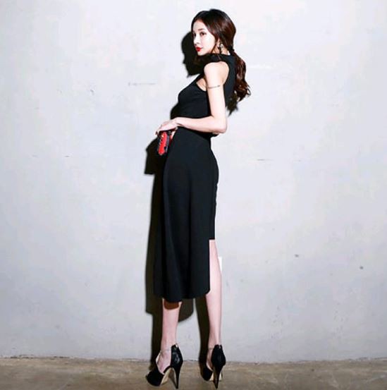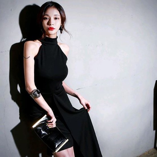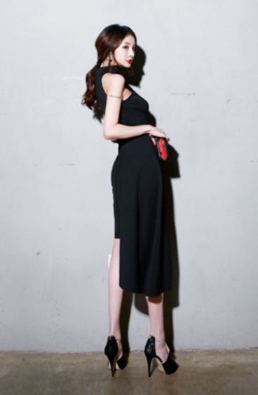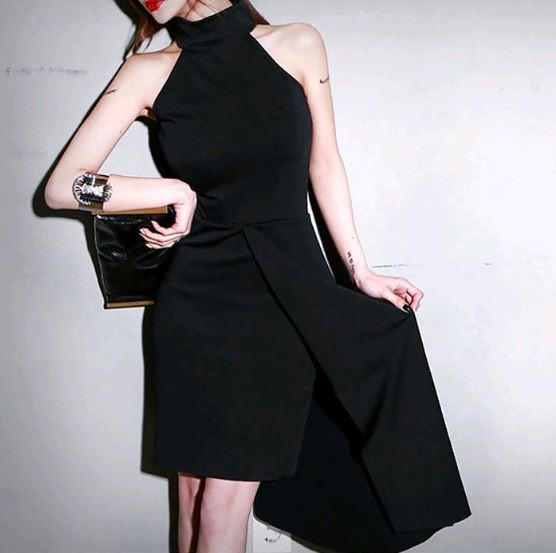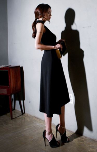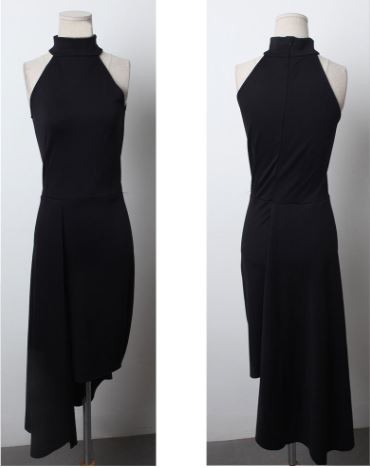 アシンメトリー風スカートが特徴的なドレスです。