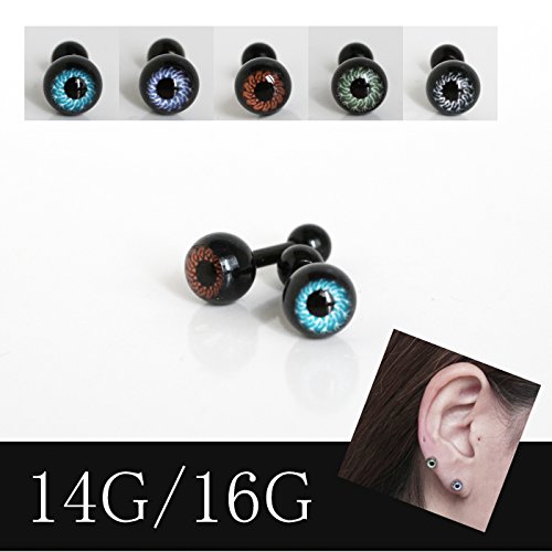 -. Title : ボディピアス ボディピ 14G 16G ストレートバーベル 目玉 ブラック 軟骨ピアス ヘリックス 耳たぶ