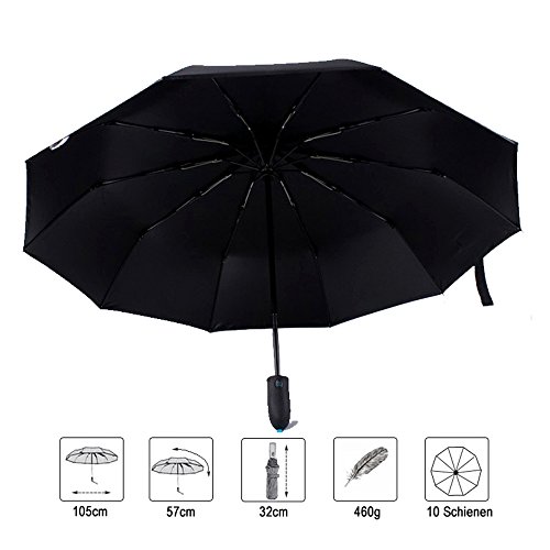 -. Binding : Misc. -. Brand : AnnerTech -. Color : Black, Blue -. Feature : SUPERIOR WIND-DEFYING 10-RIB CONSTRUCTION- Not 6 or 8 aluminum ribs, fortified with 10 resin-reinforced premium fiberglass ribs, flex frame made from steel components withstand powerful gusts without turning inside out; STORM, HURRICANE, go away / AMAZINGLY AUTOMATIC OPEN / CLOSE FUNCTIONALITY- One second one hand operation, engineered with automatically adjusting frame, designed to invert and bounce back to its original shape with only one button; NEVER again strle on those unpredictable wet, rainy days / SUPER LIGHTWEIGHT COMPACT AND SPACIOUS- Measures just 12.7" long and weighs 1lb for easy storage in purses, briefcases, backpacks, lage; with zipper bag, put inside so easy; A full 41" canopy allows for full coverage, with perfect Anti-UV layer, never worry about sun / QUALITY WORKMANSHIP WATER-REPELLENCY- Ergonomic, slip-proof, and rubberized handle with wrist strap reduces hand and wrist fatigue; Reject water and other elements through its waterproof and instantly drying canopy with state-of-the-art technology / LIFETIME REPLACEMENT GUARANTEE - You are protected for life from the rain, sleet and snow, through our lifetime replacement guarantee. You may don't know what a super umbrella it is, but you will believe when it in your hands, it's a gift for you as well as a surprise, this purchase makes sense, you won't regret it. -. IsAutographed : 0 -. IsMemorabilia : 0 -. Label : AnnerTech -. Manufacturer : AnnerTech -. PackageQuantity : 1 -. ProductGroup : Sports -. ProductTypeName : SPORTING_GOODS -. Publisher : AnnerTech -. Size : Large -. Studio : AnnerTech -. Title : Folding Travel Umbrella Automatic Open/Close UV Protection