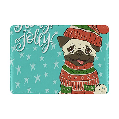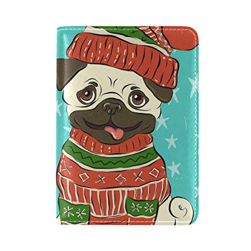 (Sunlome)/Accessories/Luggage, Bags Travel/DIRECT FROM USA/Sunlome Christmas Happy Winter Pug Dog Wearing The Knitted Sweater Leather Passport Holder Cove...